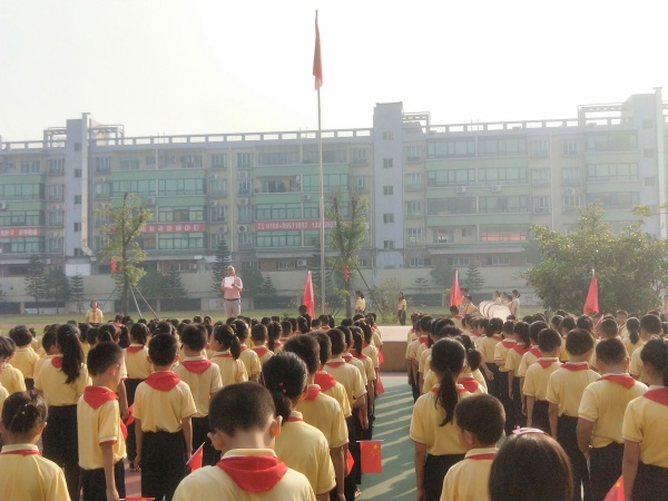 接下來,由學校少先隊輔導員廖少紅老師指揮,全校師生迎著朝陽,用滿懷的激情、嘹亮的歌聲唱響了《愛我中華》、《歌唱祖國》,歌聲響徹校園上空,表達著全體師生對偉大祖國的熱愛與贊美。全校師生唱完后齊聲高呼:祖國萬歲!