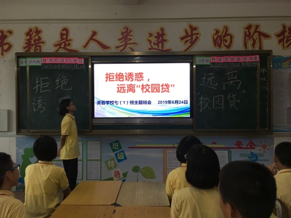 為了讓學(xué)生更加了解校園貸的危害,防止學(xué)生落入校園貸的陷阱,6月24日下午,芙蓉學(xué)校初中部開(kāi)展了“拒絕誘惑,遠(yuǎn)離校園貸”主題班會(huì)活動(dòng),本次班活動(dòng)以班級(jí)為單位開(kāi)展。