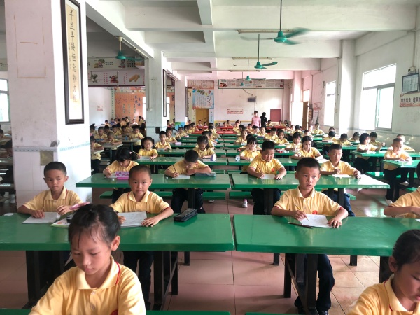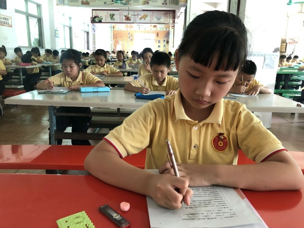 18日下午,學校餐廳里一片熱鬧的景象,那是芙蓉學校正在進行課外閱讀考級活動。此次考核沿用了芙蓉學校等級考核的方式,由學校統一組織,學生自愿報名參與,分等級考核。由全體語文教師監考、閱卷。閱讀考級內容為芙蓉學校推薦書目,主要考查學生課外閱讀水平以及閱讀技巧。試題內容涉及面廣。考場里,孩子們或低頭蹙眉,冥思苦想;或神采飛揚,自信從容,他們都全心全意地投入到答題之中去,爭取交上一份令自己滿意的答卷。