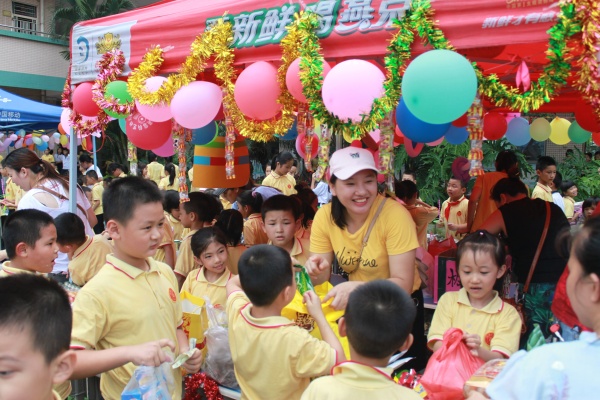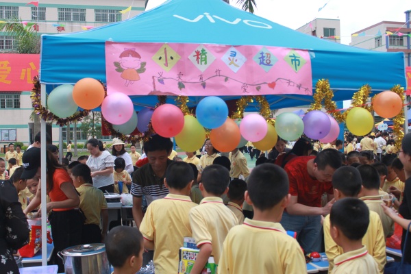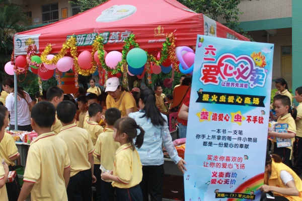 31日下午,義賣活動在《愛的奉獻》歌曲聲中拉開序幕,同學們將自己閑置的學習用品、書籍、毛絨玩具、手工藝品、手工制作飾品、個人創作的書畫作品等紛紛捐獻出來義賣。展臺、義賣海報布置得五彩繽紛:“義賣有價,愛心無價”、“因為有愛作音符,美好生活能共譜!”整個校園充滿了濃濃的愛意。學生們臉上掛著燦爛的笑容,在熱鬧的氣氛中慶祝自己的節日。在老師和家長的組織引導下,孩子們分工合作,互相選購,買自己喜歡的物品,獻出自己的愛心,整個現場熱情似火,每個家長和孩子的臉上都洋溢著收獲的喜悅。