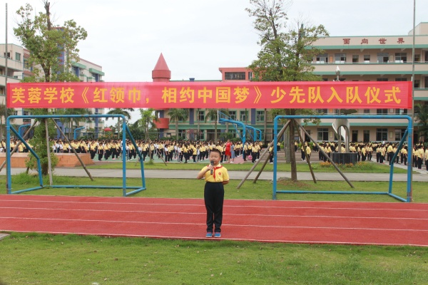 為深入學習宣傳貫徹黨的十九大精神,引領少先隊員踐行社會主義核心價值觀,增強少先隊員爭做新時代好隊員、成長為擔當民族復興大任的時代新人的信心與決心,,5月30日,芙蓉學校舉行了以“紅領巾相約中國夢”為主題的新隊員入隊儀式。