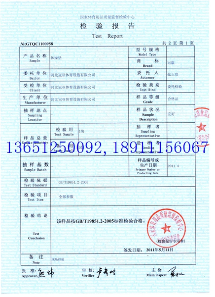 體操墊檢測報告: