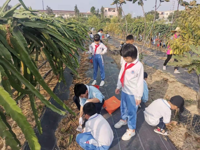 在實踐基地里,同學們先在老師的帶領下,環繞基地一周,參觀實踐基地的各種植物和小動物。然后由基地負責人分配勞動任務。同學們在班主任的帶領下進入火龍果園種植地除草和清理垃圾。勞動中,同學們分工合作,有的用鐵鍬除草,有的用鏟子松土,有的用小桶運雜草和園區的垃圾,大家相互配合、團結友愛,都不怕臟、不怕苦,積極地投入到社會實踐活動中。經過同學們辛勤的付出,華保生態園煥然一新,同學們積極、肯干、文明、守紀的表現受到基地負責人的贊賞。