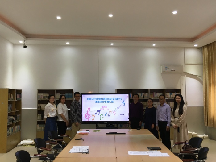 各課題主持人分別從課題研究的背景、前階段的研究概況、研究反思與困惑等方面對課題研究的進(jìn)度、困惑、構(gòu)思進(jìn)行總結(jié)與反思。其中,音樂科組的《培養(yǎng)初中班級合唱能力的實(shí)踐研究》結(jié)合學(xué)校社團(tuán)活動(dòng)的開展、競賽類成果、學(xué)校午唱等方面進(jìn)行較為詳細(xì)的總結(jié),認(rèn)為策略研究部分需下功夫,提高定性評價(jià)的科學(xué)性。