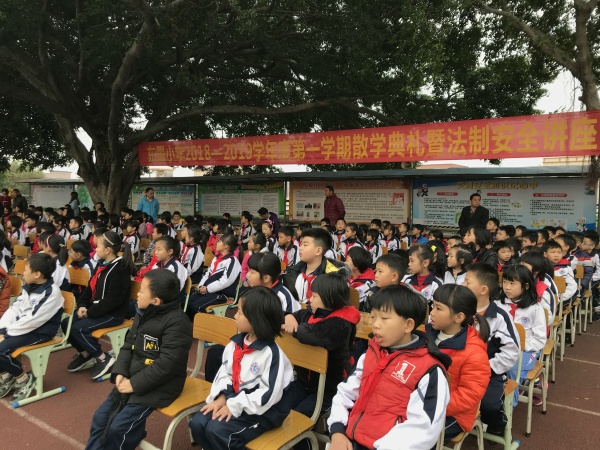 沐浴著冬日暖陽,孩子們即將迎來愉快的寒假。為了讓孩子們能度過一個快樂、充實、安全的假期,1月18日上午,東罟小學召開了2018學年度第一學期散學典禮暨法制教育會議。東罟小學全體師生參加本次散學禮活動。