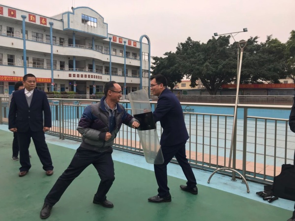 為了有效防范校園突發傷害事件的發生,進一步提高師生的自救及抵御外來侵害行為的能力,確保師生在突發性傷害事件發生時能及時、安全地疏散,杜絕、減低傷亡事故的發生,東罟小學于2019年1月8日下午舉行了反恐防暴安全演練。