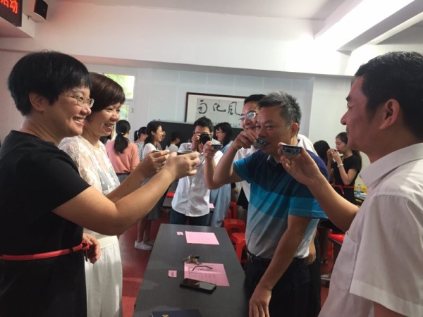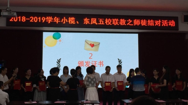 儀式開始,首先由此次活動的負責人小欖中心小學的校長霍熔坪宣讀了師徒結對的名單。此次師徒結對共有18對。其中東罟小學的新教師3人。緊接著東罟小學校長陳媚芳與其他四位校長一起為結對的師傅們頒發了證書,伴隨著一陣陣熱烈的掌聲,老師們的心也隨著這一份份聘書,收獲一份信任,增添一份責任。隨后,東罟小學新教師鄭蓓蓓、黃汝穎、麥碧珊以及其他學校的新老師分別向師傅獻茶行拜師禮,表達對師傅的敬重之情。緊接著,永寧中心小校長梁成初發表了熱情洋溢的講話,他寄語新教師,希望所有新加入的教師們都要像諾貝爾獎獲得者屠呦呦女士一樣,克服種種苦難,不斷學習提升自己的業務水平,用“你若盛開,蝴蝶自來”這句話來鼓舞新教師。隨后,東罟小學師徒結對的新教師與校長和師傅們進行了合影留念。