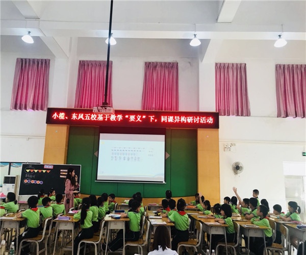為了促進新教師的課堂教學水平,提高課堂教學實效,2019年4月23日上午,小欖、東鳳五校教學聯盟活動之新教師匯報課研討活動在鳳鳴小學舉行。本次展示活動由黎梅、姚曉燕、王京儒、黃汝穎、袁樹干、黃濤、楊小潔、周小紅、鄧蕾等九位老師分別上了一節匯報課,涉及英語、數學兩個學科。