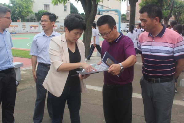 2019年9月4日上午,新學年開學伊始,東鳳鎮第二中學就迎來了鎮黨委羅綺冬書記和主管教育的劉燕文委員及鎮黨政辦、文體教育局、教指中心相關負責人到校實地調研。在第35個教師節即將來臨之際,讓二中師生感受到了來自黨委政府的深切關懷。在東鳳二中胡松華校長的陪同下,羅書記一行對包括學校教學樓、運動場、宿舍等在內的校園環境進行巡察,羅書記邊走邊看,邊看邊問,并手拿圖紙對二中的情況進行詳細了解。