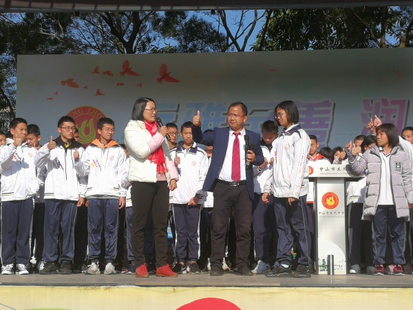 在中山市紀(jì)念中學(xué)體育館,參與活動的全體同學(xué)以青春的名義鄭重宣誓:拼洪荒之力,圓青春夢想;破長風(fēng)萬浪,贏無悔人生!初中不留遺憾!人生更加完美!