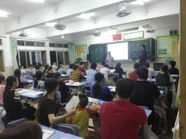 晚上7:30—8:00,家長(zhǎng)們陸陸續(xù)續(xù)來(lái)到學(xué)校各班的班級(jí)。為了讓家長(zhǎng)更好的了解自己的孩子在本學(xué)期的情況,各班主任們都精心制作了本學(xué)期班級(jí)、年級(jí)、學(xué)校活動(dòng)的視頻或電子相冊(cè)在課室播放,并為每一位參會(huì)的家長(zhǎng)提供了一份內(nèi)容豐富、指導(dǎo)性很強(qiáng)的《家庭教育導(dǎo)報(bào)》,家長(zhǎng)們快樂(lè)的笑聲和閱讀導(dǎo)報(bào)時(shí)的安靜氛圍,充分體現(xiàn)了家校合力的良好局面。