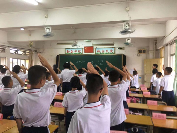 活動由六個部分組成:開學典禮開始,全體師生起立,面向國旗,奏唱國歌。祖國即將迎來70華誕,這份喜悅與榮耀讓每位師生謹記對祖國的赤誠之心。接下來,學校黨委書記劉喜全校長向全體師生作了愛國主義教育新學期講話。劉校長在講話中表達了對祖國濃濃的愛國深情,總結了學校上學期所取得的成績,同時也向全體師生提出了新學期殷切的希望。他鼓勵全體師生在新的學期全力以赴,為實現自己心中的理想,為祖國的進一步強大和發展而拼搏、奮斗。這份殷殷囑托將會化為師生的動力,在即將開始的學習生活中再接再厲,再創輝煌!會議的第三項議程,是教師代表梁琴老師為師生作《我與祖國共成長》主題演講。梁琴老師的演講鏗鏘有力,飽含著濃濃的愛國深情,為新中國成立70周年獻上了一份城摯的祝福。她希望同學們在學習過程中,能心系祖國,一起為中華之崛起而讀書。接著,來自三(3)班的蘭宏基同學帶來了飽含感情的發言。蘭同學幽默風趣的演講打動了在座的各位同學,他向同學們發出了“向國旗敬禮”的倡議,號召全體同學在新學期要刻苦讀書,取得更好的成績。會議的最后,劉木勛主任就新學期的一些注意的問題向全體同學做個強調,重點提及了防溺水、消防、交通等安全問題,學習態度,生活習慣、,紀律養成以及行為規范的培養。他鼓勵同學們在新學期要爭當善雅少年,將東中學子的優秀品質發揚光大。