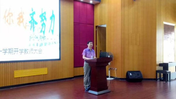 首先,劉喜全校長簡要回顧和總結了假期的工作,初一年級的入學工作的順利開展,為接下來的教學任務順利開展打下了堅實的基礎。其次,對校園建設工作的階段性的成果進行了展示,并再次叮囑校園安全。接著,總結了上一學年的成績,對未來的發展進行規劃。