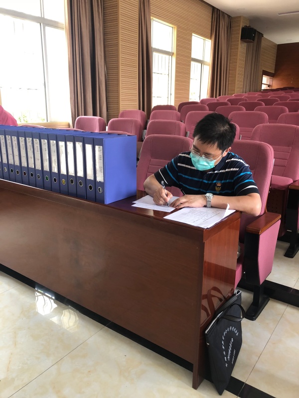 陳主任和李主任在學校的大多媒體教室認真按照復學驗收表,逐項落實學校準備情況,提出整改建議。