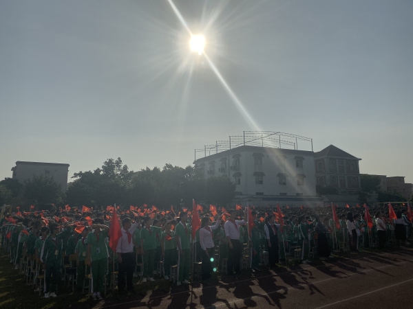 最后,少先隊總輔導員趙遠鋒副主任帶領全體少先隊員莊嚴宣誓。一聲聲鏗鏘有力的誓言是這些小小少年的宣告和承諾:不負時代所托,擔負時代重任。