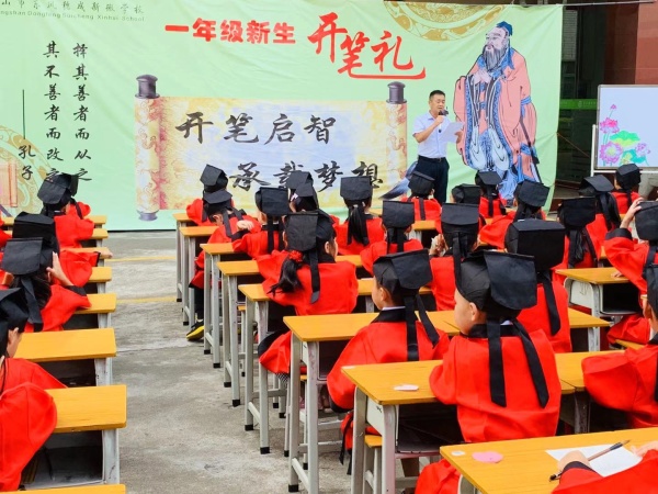 一年一度秋風勁,又是丹桂飄香時。9月18日下午,中山市東鳳穗成新徽學校政教處在校長室的指導下,特意為一年級新同學舉辦了一場寓意深刻、莊重熱烈的小學入學儀式---開筆禮,歡迎新同學的到來。
