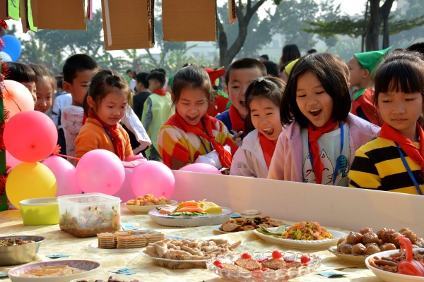 本次活動以以年級組為單位,共設(shè)7個展位。美食節(jié)活動得到了全校師生和廣大家長的大力支持,家長們和孩子們都紛紛拿出看家本領(lǐng),蒸煮炒炸,創(chuàng)意五花八門,精巧的雕刻,巧妙的拼盤,他們一起完成一道道美食,體會溫馨的親子合作氛圍,增進情感交流,拉近了孩子與教師、學(xué)校與家長的距離。