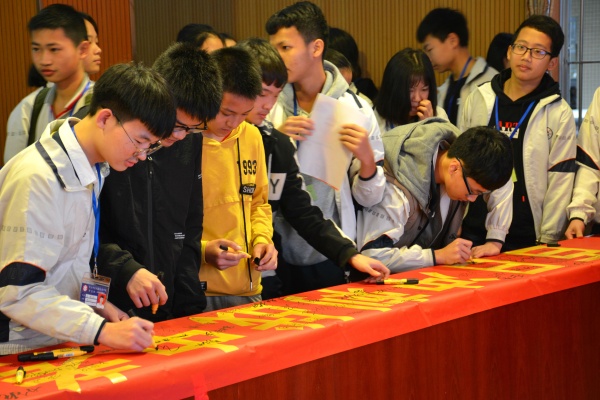 最后,全體師生有序的來(lái)到主席臺(tái)前,用手中的筆,在早已準(zhǔn)備好的“百日沖刺戰(zhàn)中考,一鼓作氣創(chuàng)輝煌”的橫幅上鄭重地簽下自己的名字或祝福語(yǔ),傾注了師生們必勝的信念。