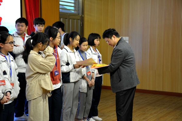 觀看完畢后,教務(wù)處呂萬(wàn)春副主任宣讀上學(xué)期期末考試總分前50名的獲獎(jiǎng)學(xué)生名單,學(xué)校行政及初三任課教師為獲獎(jiǎng)學(xué)生頒獎(jiǎng)。