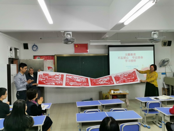 最后,善良用心的梁老師現場展示了記錄新時代偉大建設的作品,還分別給柏苑小學校方、全體黨員教師及教師們準備了特別的剪紙禮物。這感人的一幕幕贏來了在場老師們的一次又一次的熱烈掌聲。梁老師用自己的行動和經歷分享深深地感動和感染著在場的所有老師們,讓全體教師對梁老師產生無限的崇敬之情。