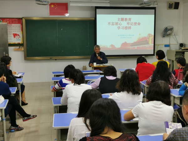 立足主題教育,學習身邊榜樣,聚焦愛國主義教育,為引領全體教師在中國特色社會主義偉大實踐中砥礪前行、奮發有為。東區柏苑中心小學充分發揮社區黨建聯盟的資源,于11月27日下午,邀請廣東省好人、中山市優秀黨員、花苑社區的梁杰康老師給全校教師作了《不忘初心,牢記使命》主題教育的講座。