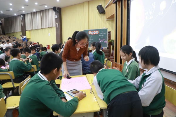 小學(xué)科學(xué)課堂就是大孩子(老師)帶領(lǐng)小孩子去經(jīng)歷并不完美的科學(xué)探究歷程。首先,由朗晴小學(xué)黎曉平老師展現(xiàn)了一節(jié)低年段科學(xué)課《紙陀螺》。黎老師從小視頻引出紙陀螺結(jié)構(gòu),孩子們?cè)谧黾埻勇莸倪^程中發(fā)現(xiàn)問題、討論分析,對(duì)如何能讓紙陀螺轉(zhuǎn)得時(shí)間更長進(jìn)行探究。孩子們?cè)谶@個(gè)過程中積極地動(dòng)手實(shí)踐、迫不及待地與同伴分享。黎老師細(xì)心的將孩子們的探究過程通過平板電腦拍照、攝影記錄下來,并使用投屏技術(shù)通過大屏幕展示給聽課老師,讓師生共同深入地參與到探究活動(dòng)中來。
