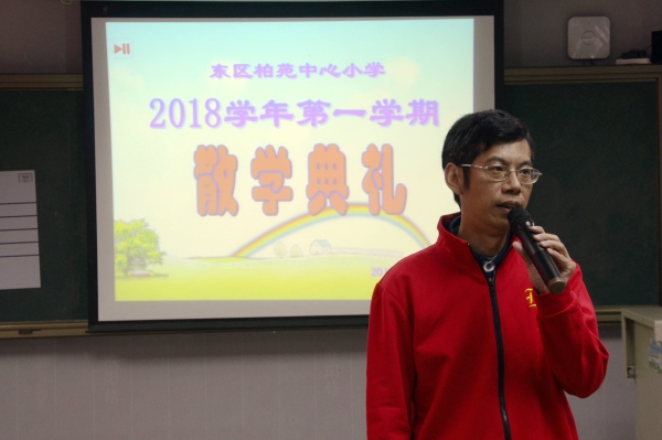 冬日暖陽普照大地,東區柏苑中心小學校園里洋溢著春節來臨的喜慶氣氛和春天的氣息。1月18日上午8時許,全校舉行了簡單而隆重的2018學年第一學期散學典禮。