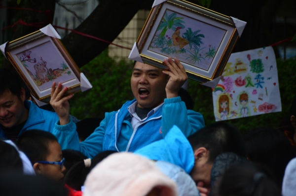 校園內熱鬧非凡,義賣活動現場無處不涌動著愛的暖流。愛心義賣的各個攤位在師生和義工家長們的配合下,布置得各具特色,義賣活動亦進行得井然有序。在各班義賣攤位前,展示著師生們精心準備的愛心義賣宣傳海報,每一幅都傾注著師生滿滿的愛心,也吸引著隊員們的眼球。
