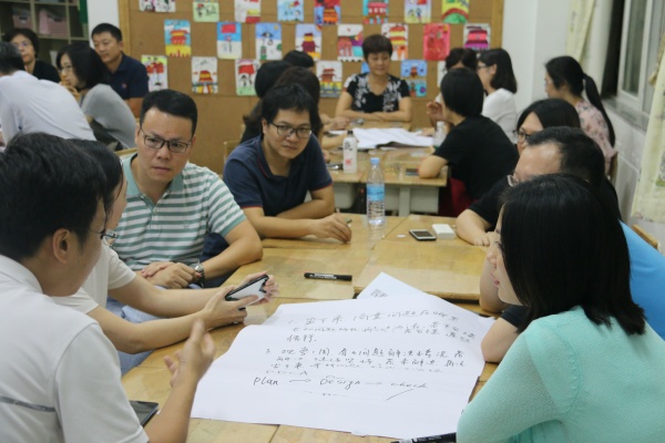 本次家長會以班級為單位開展,流程大致分為七個模塊,各班班主任和任課教師根據孩子的年齡特點和班級具體情況,有針對性地選擇內容有序開展。首先,通過播放校園新聞視頻,讓家長們了解學校辦學理念和教育教學現狀。接著,在“我們的團隊”環節,家長們互相介紹并以游戲的形式分組,這活動增進了家長之間的溝通交流,讓家長會氣氛更活躍。然后,班主任和科任老師在模塊 “我們的家”中,就本班的班級管理、學生的行為習慣、各科學習現狀等方面做詳細匯報,讓家長全方位地了解學生的在校情況。隨后,在模塊“我們愛學習”中,家長們以小組合作的方式探討會前調查反饋出現的三個典型問題,共同交流行之有效的教育方法。最后,部分班級進行班級團康建設,增強家校凝聚力。