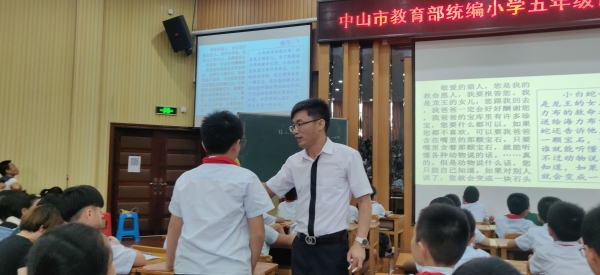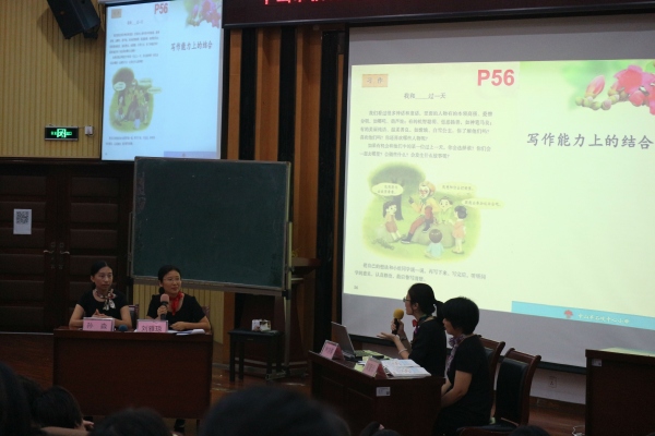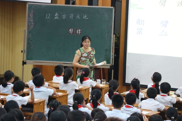18日上午是統編教材四年級上冊的培訓,由南區北臺小學謝潔儀老師主持。首先是開區第四小學劉美珍老師執教第四單元課文《盤古開天地》,劉老師帶領孩子了解盤古開天地的起因、經過、結果,讓孩子感受故事的神奇,激發閱讀興趣。接著開區第一小學的李春雨老師執教第四單元習作“我和 過一天”,李老師帶領貪吃、愛睡、易受欺負的豬八戒來到學生身邊,步步引導,讓孩子想象和豬八戒在一起發生的趣事。接著市石岐中心小學的林游菊、孫淼、劉雅瓊、黃愛珍四位老師對統編四年級上冊教材的認識和使用展開討論,分別從閱讀教學、習作、口語交際、語文園地這四個方面進行分析。最后梁雪菊老師從統編教材整體特點出發,為與會教師提供使用策略,老師們受益良多。