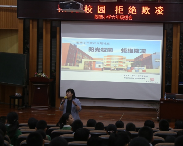 為了營造良好的學習氛圍,提高學生明辨是非的能力,預防欺凌事件的發生。9月18下午,東區朗晴小學邀請中山市委黨校法律顧問陳燕維律師為六年級全體師生開展“陽光校園,拒絕欺凌”講座。