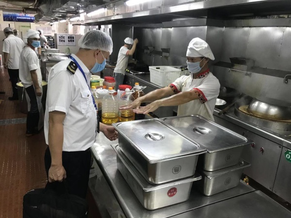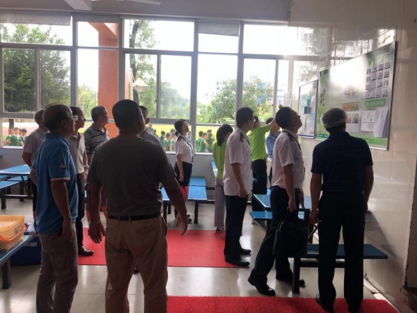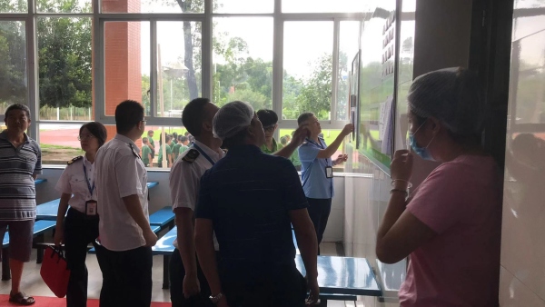 在總務主任張鵬陪同下,檢查小組人員首先深入飯堂,檢查了食堂的硬件設備,查看了倉庫食品的入庫與記錄,食品留樣記錄等資料,并詳細了解了食堂的責任落實情況,檢查了餐飲服務許可證和食堂工作人員的健康證件,詢問了日常的食堂監管。