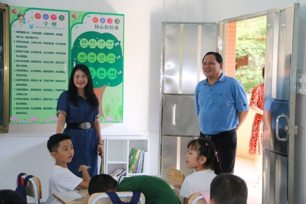 譚書記一行參觀了朗晴小學校容校貌,詳細了解了學校開學情況,認真聽取了該校鄭鳳姚校長的工作匯報。譚書記對朗晴小學校園文化建設、教師陽光積極的工作狀態等整體發展態勢給予高度評價,對學生的自信大方給予充分肯定。他指出百年大計、教育為本,尊師重教是中華民族的傳統美德,他感謝教師們為東區教育事業發展付出的辛勤勞動,也勉勵廣大教師進一步增強責任感和使命感,胸懷大局,志存高遠,為東區教育事業發展做出更大的貢獻,區政府也會盡最大努力提升教師們的幸福指數。他還叮囑鄭校長要關愛老師,同時加強師德建設,鞏固和發展學校取得的各項優異成績,打造更具影響力的朗晴品牌。途中,譚書記一行進入課室,與孩子們親切互動,詢問孩子們的學習生活情況,并鼓勵孩子們勤奮刻苦,天天向上。