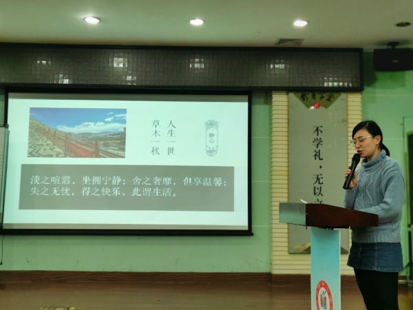 身處兩地,心有共鳴,班級管理異曲同工。王淼老師、熊艷老師隨后分別代表外派至四川成都、安徽進行學習考察的班主任團隊進行經驗見聞分享。王淼老師說起成都的山水人文環境,以哲理性的感悟“人生一世,草木一秋”開篇,緊扣班主任專業成長的幸福密碼進行了充滿詩性、哲思的分享。在忙碌的工作和學習中,我們因何忙?如何做到忙而有思,忙中有得?王淼給出自己的思考——“動則生,靜則樂”,高度提煉了班主任的理想工作和生活態度。熊艷老師的介紹在濃濃的徽派建筑藝術氛圍中展開,熊艷老師將拍攝的實地圖片一一鋪展開來,讓我們看見了徽地學校的精神文化面貌,更讓我們對參觀學校課程育人的特色及其落于實地的實施辦法與路徑印象深刻。“育人”是一條任重道遠的崇高道路,熊艷老師呼吁老師們“以生為本、師德為先、能力為重、終身學習”,令人振奮。