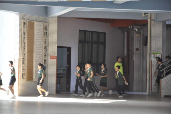 下午三點(diǎn)四十分,警報(bào)拉響,演練開(kāi)始。各班學(xué)生迅速有序出班,按照各自逃生路線向安全區(qū)域疏散。每個(gè)班級(jí)的班主任及副班主任的帶領(lǐng)下,有序行動(dòng),各樓梯及小道上也有安全員從旁指揮引導(dǎo)。學(xué)生聽(tīng)從指揮,行動(dòng)迅速。