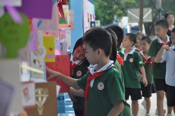 9月10日早上七點多,軒小A區大堂便熱鬧非凡,軒小的學生們紛紛在展板上貼上特制的心愿卡,每一張心愿卡都寫滿了對恩師最真摯的祝福。