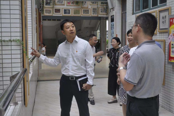 黃宇健副書記一行首先到教師辦公室看望慰問教師,與他們親切交談,了解他們的教學(xué)、生活情況。黃宇健副書記對(duì)軒小教師們的積極的工作狀態(tài)和飽滿的精神狀態(tài)給予了極大的贊賞。接著,黃宇健副書記一行深入到課室,觀察孩子們的學(xué)習(xí)情況,并對(duì)學(xué)校各班級(jí)的班級(jí)文化布置表示肯定。走訪中,黃宇健副書記詳細(xì)詢問了開學(xué)初學(xué)生的出勤、健康狀況,老師的就位情況與學(xué)校開學(xué)工作的情況,同時(shí)細(xì)心詢問了學(xué)校所面臨的困難。林華志校長(zhǎng)表示,學(xué)校的功能場(chǎng)室相對(duì)緊缺,希望能夠得到解決。黃宇健副書記一行又到學(xué)校的功能場(chǎng)室進(jìn)行走訪,了解詳情。區(qū)領(lǐng)導(dǎo)對(duì)軒小校園環(huán)境及開學(xué)的各項(xiàng)工作有條不紊表示了肯定,對(duì)充滿藝術(shù)氣息的書法室、書法長(zhǎng)廊和軒小的藝術(shù)教育表示了極大的贊賞。