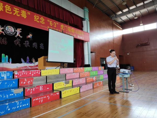 為紀念虎門銷煙180周年,讓少先隊員們更好地了解歷史、銘記歷史、拒絕毒品,2019年6月3日下午,水云軒小學聯合東區公安分局、東區禁毒辦、聯眾禁毒服務社工等單位在風雨球場開展紀念活動,五年級全體師生參與了活動。