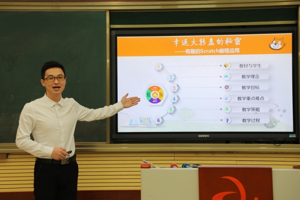 最終,經過兩輪緊張而又激烈的比賽,評出一等獎4位,二等獎6人,三等獎12人。憑借第一輪中扎實的上機實操和以《幸運大轉盤的秘密—有趣的Scratch編程應用》為主題的精彩說課,第二輪中出色的教學展示,雍景園小學許明偉老師以優異的成績,榮獲本次教學能力比賽一等獎第一名。