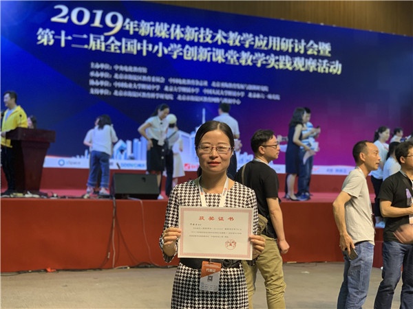 為進一步交流研討信息技術環境下的課堂教學變革,互動分享典型經驗和優秀案例,促進信息技術與教育教學創新發展,2019年5月25-28日,由中央電化教育館主辦的“2019年新媒體新技術教學應用研討會暨第十二屆全國中小學創新課堂教學實踐觀摩活動”在北京海淀區舉行。中山市東區雍景園小學宋曉玉老師攜全國中小學創新課堂教學錄像課比賽一等獎課例《誰跑得快—ScratchJr編程項目學習》代表廣東小學信息技術學科進行了現場上課和說課,受到專家評委和現場觀眾的一致好評,獲全國一等獎。