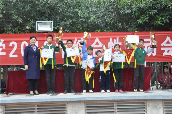 下午四點鐘,在全體運動員、裁判員、工作人員和全體師生的共同努力下,各項賽事圓滿結束。經過一天的角逐,共產生6個團體總分第一名,70多個單項冠軍,有200多個同學獲得了“金、銀、銅”獎牌,受到校長的親自表彰。