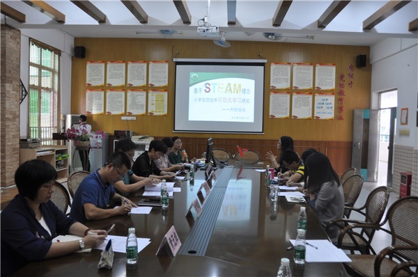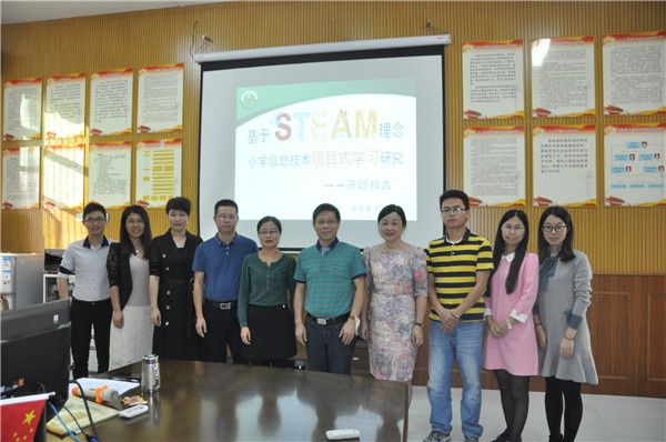 2018年11月8日下午,中山市雍景園小學(xué)宋曉玉老師主持的中山市教育科研課題《基于STEAM理念的小學(xué)信息技術(shù)項(xiàng)目學(xué)習(xí)研究》開(kāi)題報(bào)告會(huì)在雍景園小學(xué)五樓會(huì)議室召開(kāi),參加開(kāi)題會(huì)議的有教育部國(guó)培計(jì)劃專(zhuān)家、廣東省特級(jí)教師、市教研室信息技術(shù)教研員陳明宏老師,廣東省特級(jí)教師、廣東省“特支計(jì)劃”教學(xué)名師、廣東省名師工作室主持人黃偉祥主任,東區(qū)教育事務(wù)指導(dǎo)中心張卉丹老師,東區(qū)雍景園小學(xué)歐淑霞校長(zhǎng)、黃玉嬋副校長(zhǎng)、余建勇主任和課題組的全體成員。