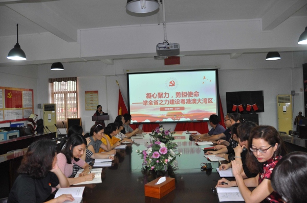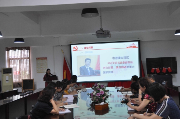 5月22日下午,東區竹苑小學黨支部組織全體黨員同志再次深入學習《粵港澳大灣區發展規劃綱要》。活動由黨支部書記范柳娟主講。