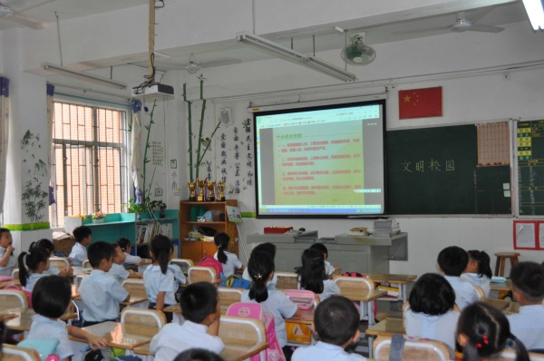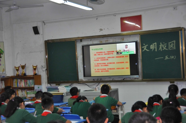 文明禮儀是中華民族的傳統美德。從古至今,源遠流長。為了建設文明校園,營造良好的校園文化,5月13日早上,中山市東區竹苑小學開展了一場“文明校園”的主題講座。這次講座由竹苑小學德育處副校長鄭泳娜通過電視直播方式主持,升完國旗后全校師生都坐在教室里安靜觀看。