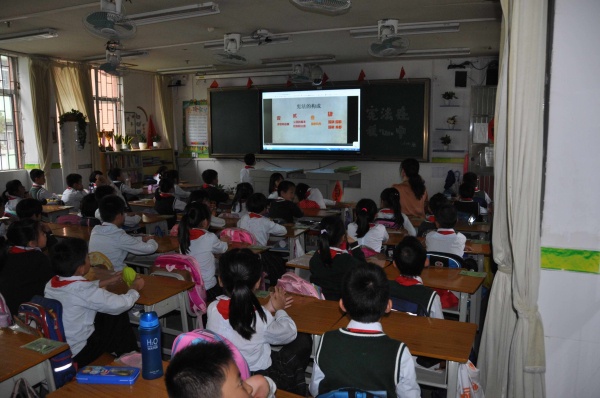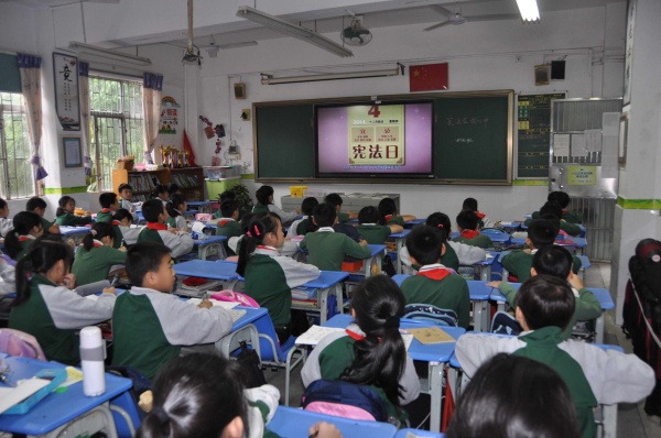 秦律師先讓大家正確認(rèn)識、看待《憲法》,《憲法》是我國的根本大法,為讓小學(xué)生能更了解《憲法》,秦律師找來了視頻。視頻通過動畫簡單講述了《憲法》,給大家一個直觀的了解。緊接著,秦律師從《憲法》的起源、地位、構(gòu)成、作用等方面來給大家講述。在同學(xué)們對《憲法》有一定程度的了解后,秦律師用多個例子讓大家學(xué)習(xí)運(yùn)用《憲法》保護(hù)自己,特別是受教育權(quán)、姓名權(quán),還介紹了《治安管理條例》、《國旗法》、《國徽法》等,十分貼切孩子們的生活。最后秦律師用破壞公物、危害安全等常見的違法行為向大家宣傳法制思想,讓大家心中有法、學(xué)會用法。