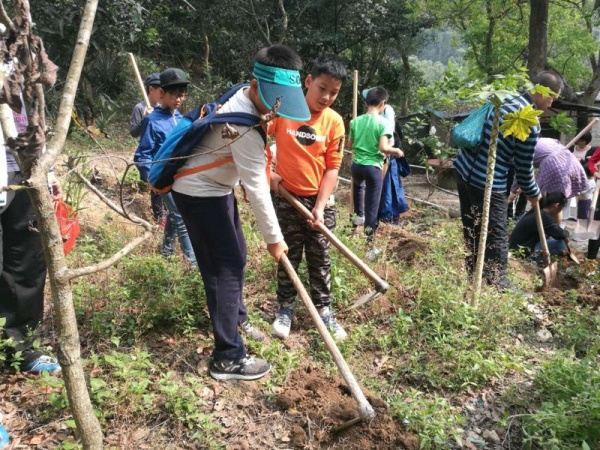 春回大地,萬物復蘇。3月17日下午2:30,東區竹苑小學五年級雛鷹大隊20名少先隊員代表以及家長們,在馮海霞老師的組織下,同學們來到了五桂山的雙合村,開展了植樹活動。