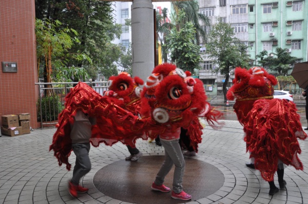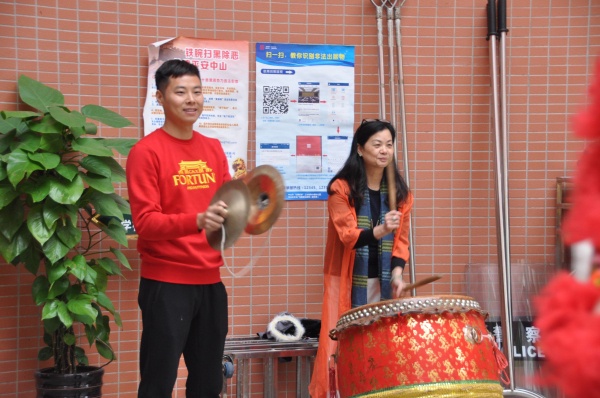 一樓大堂,東區舞獅協會會長帶著團隊親自教孩子們體驗舞獅。