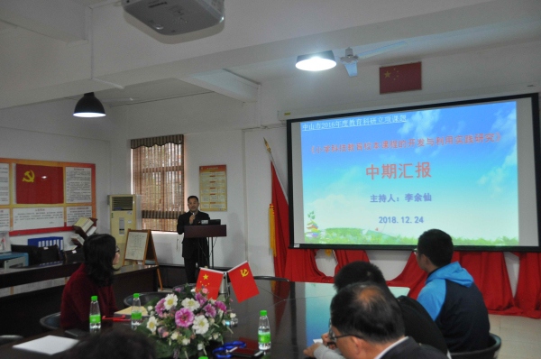 接著,《小學科技教育校本課程的開發與利用實踐研究》的主持人李余仙主任從課題研究的起點、研究過程和研究成果等進行具體陳述。
