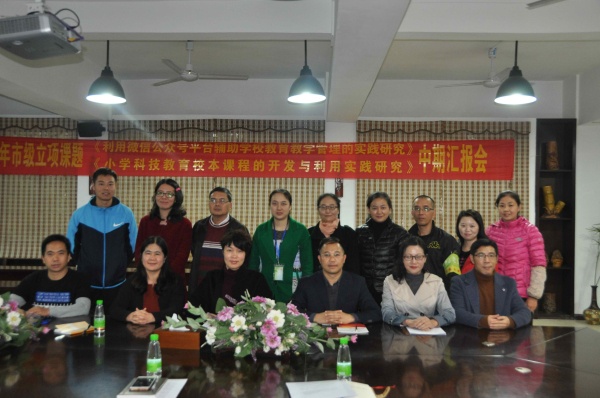 12月24日下午,在竹苑小學二樓會議室舉行市級立項課題《利用微信公眾號平臺輔助學校教育教學管理的實踐研究》《小學科技教育校本課程的開發與利用實踐研究》中期匯報會。出席本次會議的有課題主持人范柳娟校長、李余仙主任、兩個市級課題組成員以及竹苑小學課題聯盟第一小組的成員,還有來自中山市東區教育事務指導中心張卉丹老師。