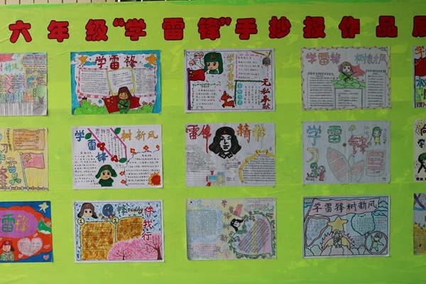 高年級組為大力宣傳雷鋒精神的時代意義和學雷鋒先進典型,組織學生用手抄報的形式,加深學生對雷鋒精神的認識和理解,促使學生自覺主動地在學習生活中時刻關注雷鋒精神,長期形成學雷鋒的氛圍。